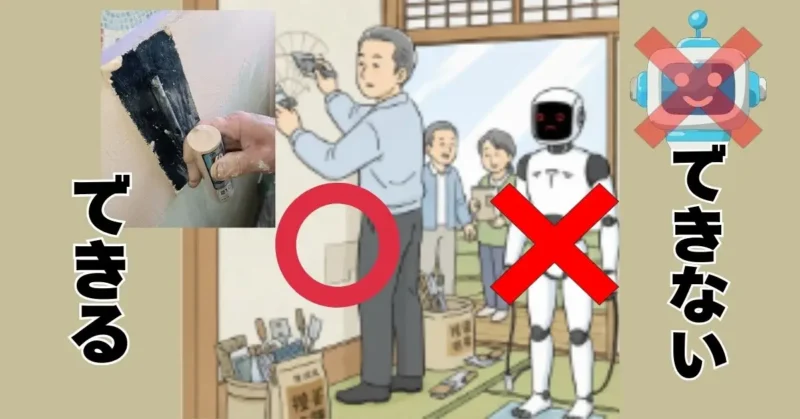 左官の仕事、特に「壁を塗る・仕上げる」という領域は、ロボットにとって最大の鬼門であり、当面の間は奪われることはないと断言します。